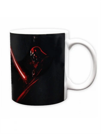 Wähle die Seite der dunklen Helden mit der Star Wars: Keramik Tasse “Darth Vader mit Lichtschwert”! Im Schein seines roten Lichtschwertes ist der dunkle Lord nur schemenhaft zu erkennen!