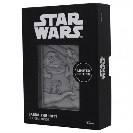 Dieser offiziell lizenzierte Star Wars Metallbarren Jabba the Hut – Iconic Scene Collection Metallbarren ist auf 9.995 Stück weltweit limitiert und einzeln nummeriert. Es zeigt eine ikonische Szene aus dem Film, misst ca. 75 x 50 mm und ist auf beiden Seiten geprägt. Das Stück wird in einer Displaybox mit Ständer geliefert.
